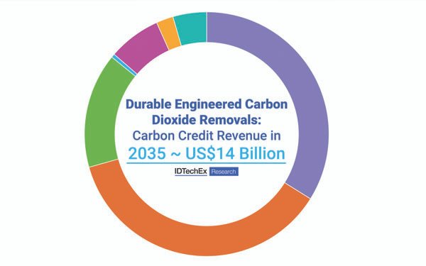 According to IDTechEx's forecasting in the new "Carbon Dioxide Removal (CDR) 2025-2035: Carbon Credit Markets, Technologies, Players, and Forecasts" report, carbon credit market revenue from durable, engineered carbon dioxide removal technologies will exceed US$14 billion in 2035.