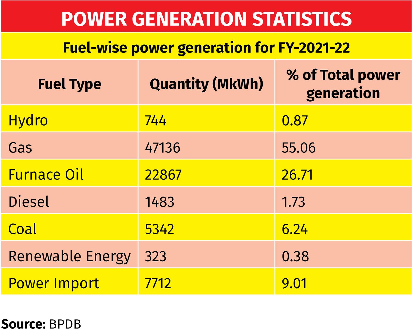 Over the last decade, there has been no significant new discovery of oil or gas. As a result, the domestic share of gas supply has been steadily declining over the past four years. At present, the government can supply a maximum of around 3,000 million cubic feet per day (mmcfd) of gas, of which 600–800 mmcfd comes from imported LNG. Gas demand in 2010–11 stood at about 2,400 mmcfd. Given an annual demand growth rate of roughly 10%, total demand should have exceeded 5,000 mmcfd by now. This has created a severe gas deficit, directly affecting power generation, which is vital for the national economy.