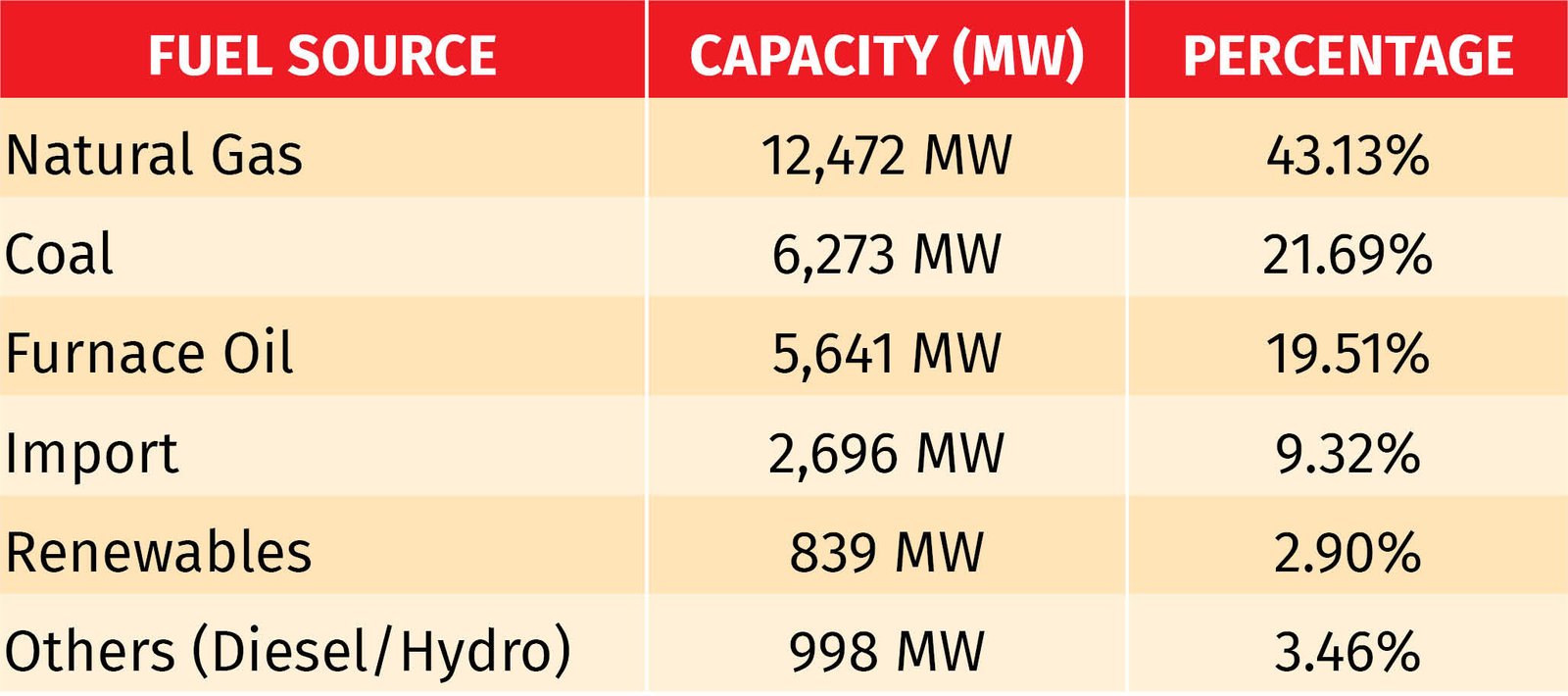 As of January 2026, Bangladesh’s installed capacity reached 28,919 MW. The fuel mix is presented as below: