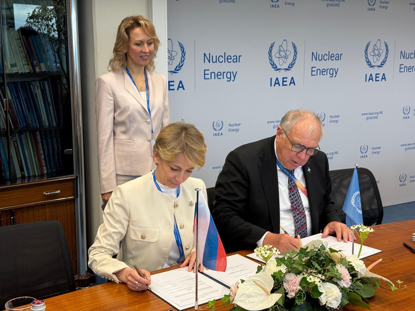Mikhail Chudakov, Deputy Director General of the IAEA, and Yulia Uzhakina, Director General of the Rosatom Corporate Academy, signed the agreement on behalf of their respective sides. Tatyana Terentieva, Deputy Director General for Human Resources at Rosatom, was also present.