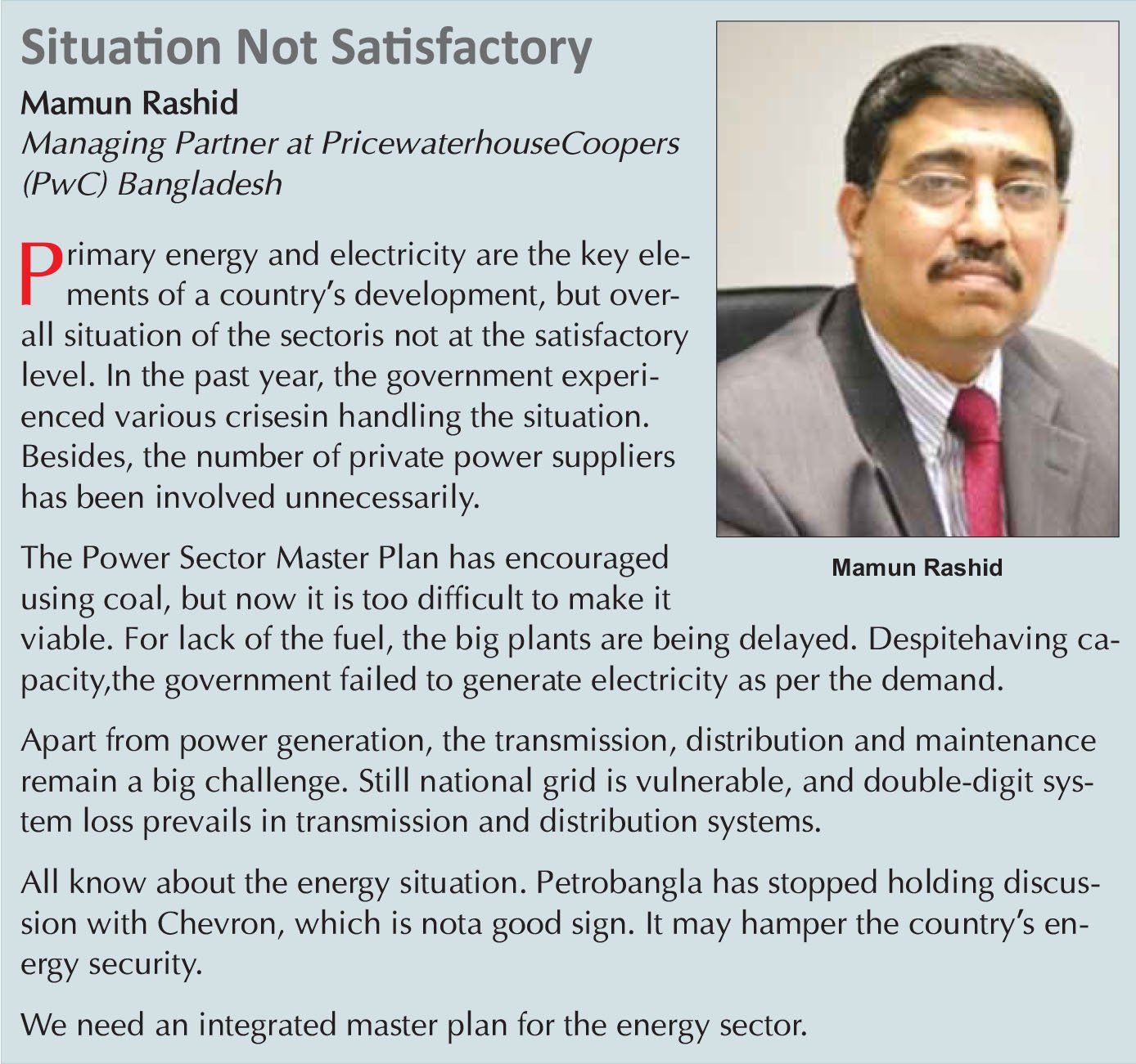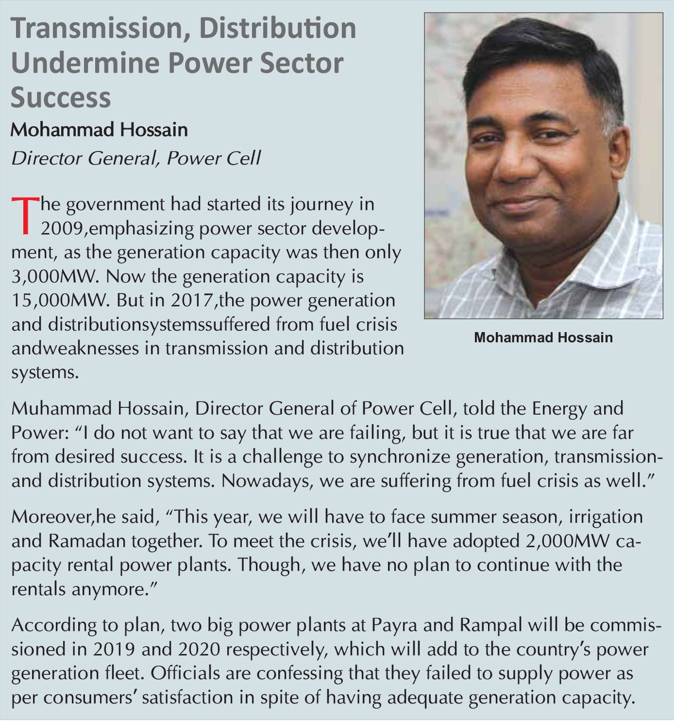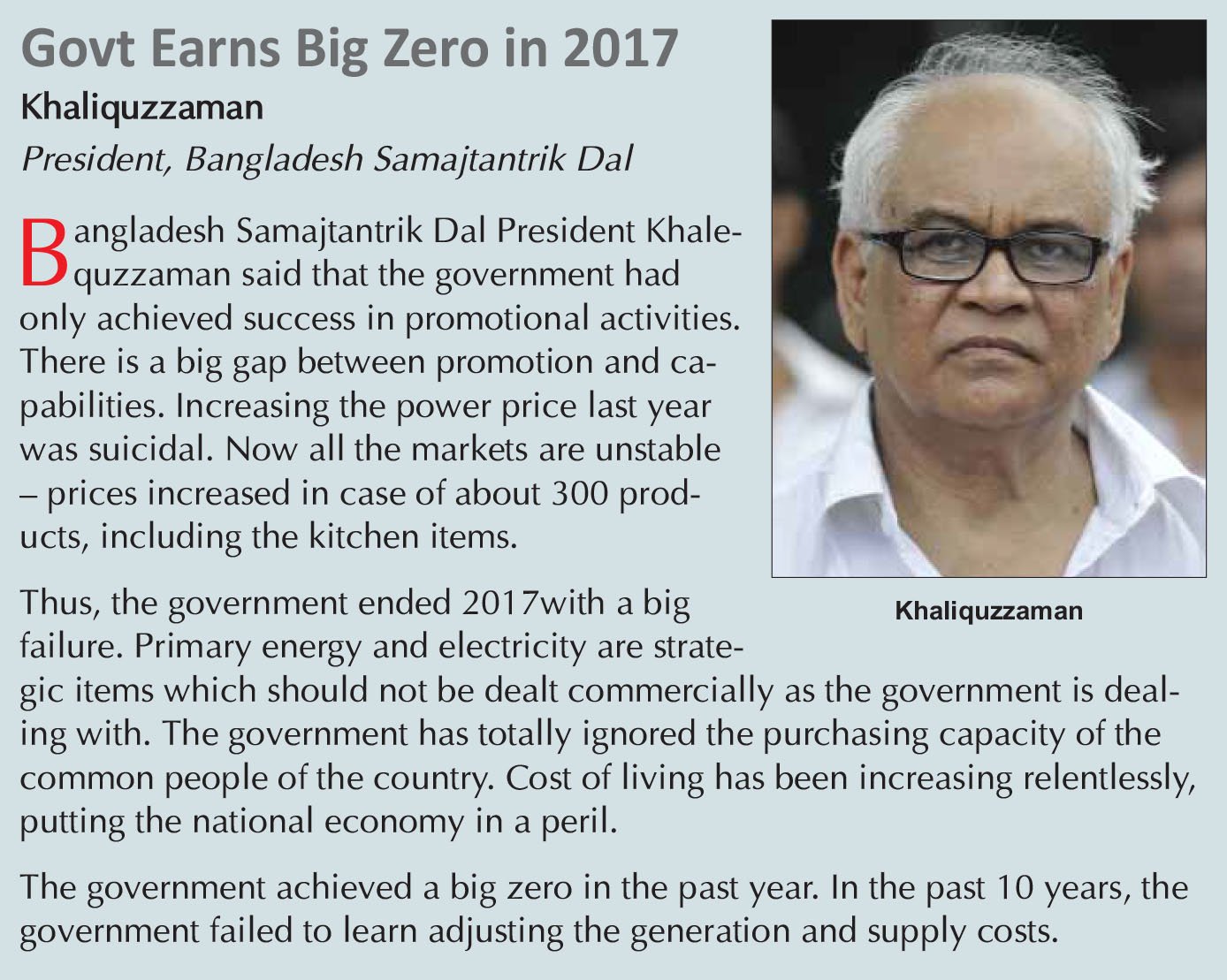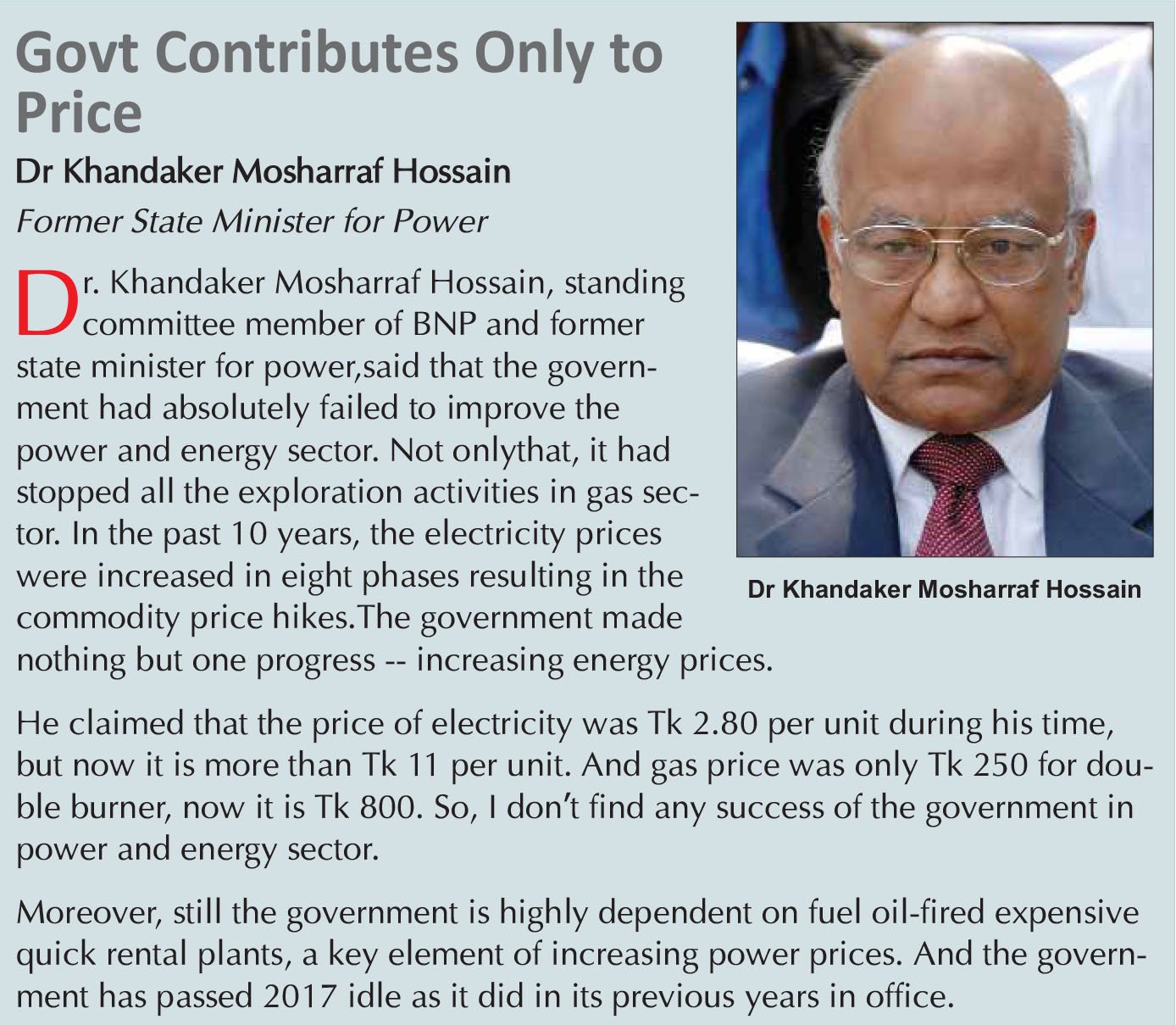 Darkness at the toe of light is well-known proverb in Bangladesh. Stories of darkness and irregularities are surfacing along the highway of Bangladesh racing towards light. Those who are in government are well aware of these, but no signs of rectifying the defects or amending mistakes are in view. One group is saying that nothing is happening. But in the name of development, wholesale corruption and rampant pilferage is going on. Amidst such blame game by two opposing schools of thoughts, another calendar year 2017 has whistled by. The Awami league-led alliance government, after completing its fourth year of second term, has entered the final year of this term. Mentionable achievements have been visible in the power and energy sector infrastructure development that broke all earlier records. But in terms of sustainable development, there are significant drawbacks as well. During this period the largest single project of 2,400 MW nuclear power plant at Rooppur commenced. Around 8,000 MW new generation capacity has been added. Projects totaling 20,000 MW are at different stages of implementation.