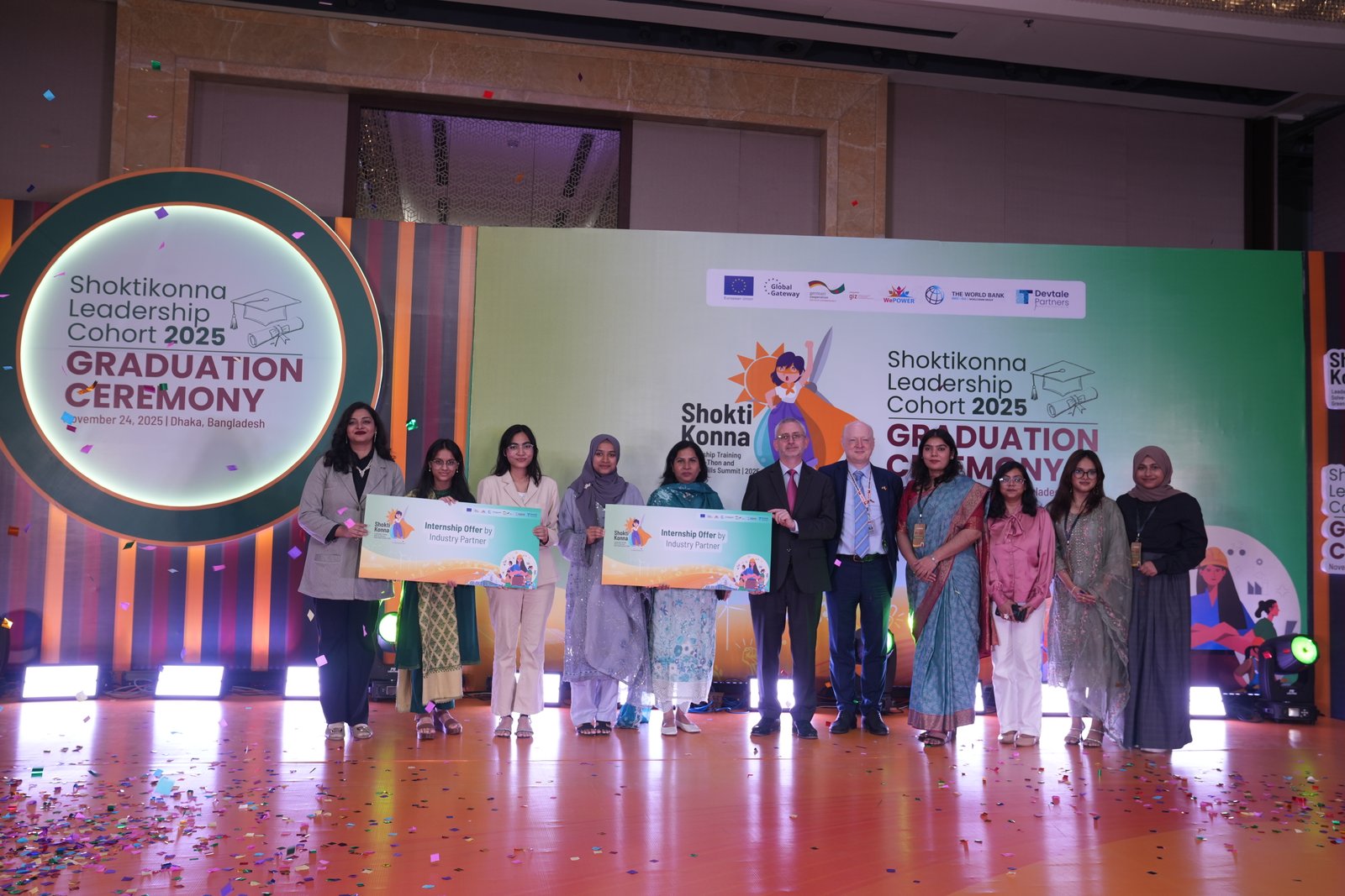 Micheal Miller, Ambassador and Head of Delegation, Delegation of the European Union to Bangladesh said, The European Union is proud to work with Shoktikonna - to strengthen skills, confidence, and leadership. These efforts are contributing to a more equal, more innovative, wealthier and more sustainable Bangladesh. Congratulating the Shoktikonna graduates of 2025, we underline our support for training, combined with real workplace experience, that opens doors to employment and leadership roles in the green economy.