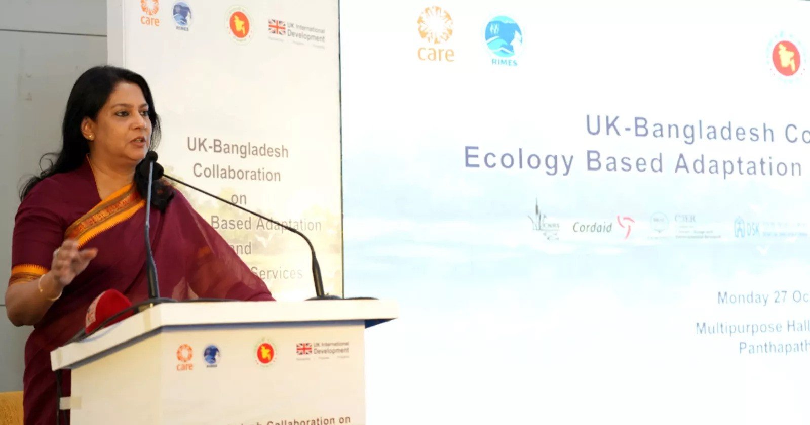 She made the remarks on Monday while addressing a national event titled “UK-Bangladesh Collaboration on Ecology-Based Adaptation and Hydro-Met Services” at Pani Bhaban in Dhaka.