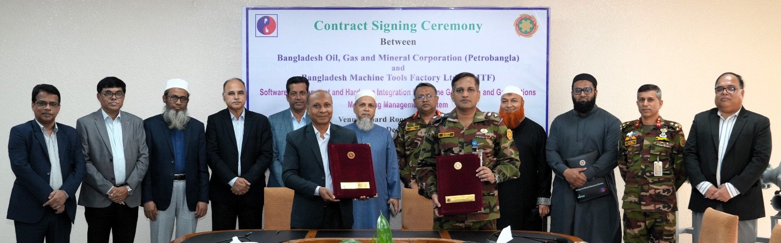 December 22, 2025 (PR) - A contract was signed today, at the Boardroom of the Bangladesh Oil, Gas & Mineral Corporation (Petrobangla) between Petrobangla and Bangladesh Machine Tools Factory Limited (BMTF) to implement the project titled “Design, Development, Implementation, Commissioning and Maintenance of a GPS Location-Based Gas Meter and Metering Station Monitoring Management System.” The system will be deployed across Petrobangla’s gas production and marketing companies.