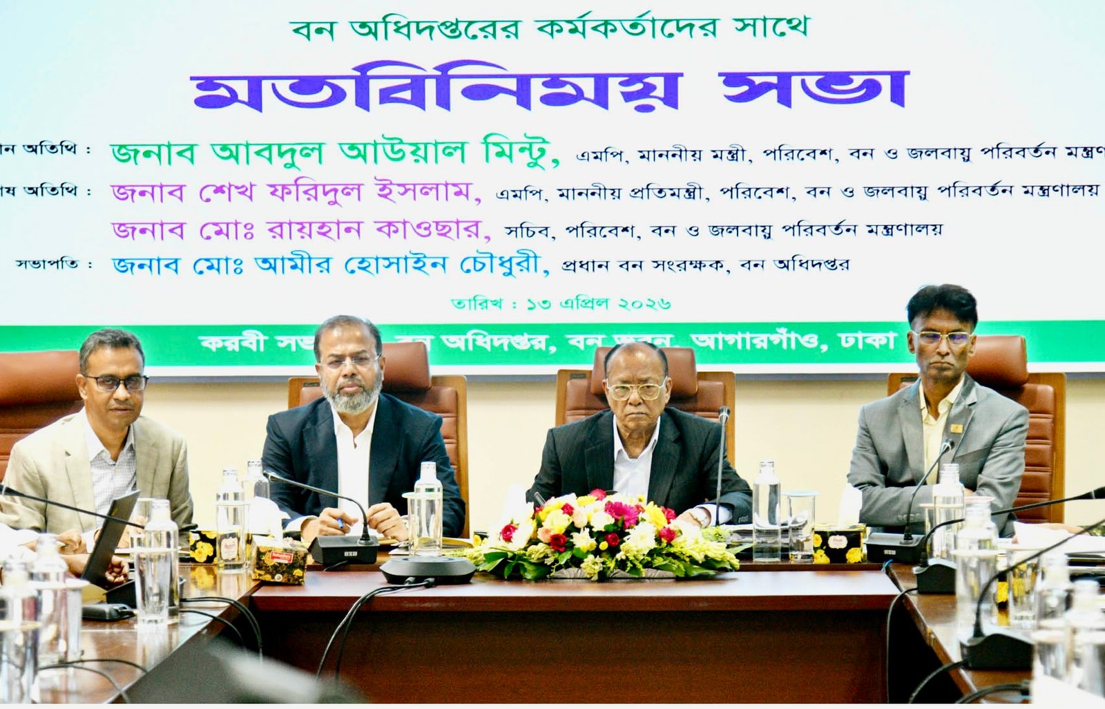 Dhaka, April 13, 2026 — Environment, Forest and Climate Change Minister Abdul Awal Mintoo has announced plans to expand tree plantation in coastal and char areas and take action to recover encroached forest land.